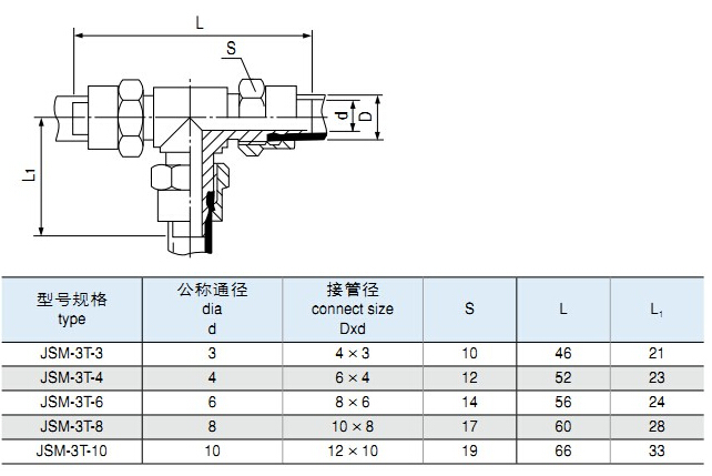 JSM-3T-3,JSM-3T-4,JSM-3T-6,JSM-3T-8,JSM-3T-10,鎖母式三通管接頭