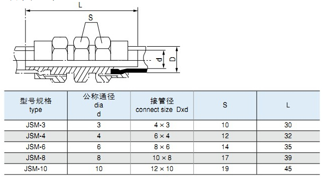 JSM-3,JSM-4,JSM-6,JSM-8,JSM-10,鎖母式直通管接頭