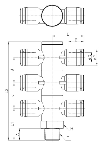 Model ¢D  ¢P  T L1 L2 E A B J H (Hex) ORIFICE WEIGHT(g) BOX(EA)
