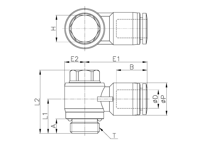 Model ∅D ∅P T L1 L2 E1 E2 A B H(Hex) ORIFICE WEIGHT(g) EA(BOX)
