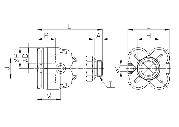 Model ∅D ∅P T L E J ∅C A B H(Hex) ORIFICE WEIGHT(g) EA(BOX)