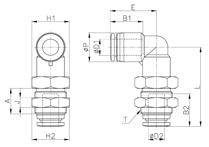 | Model | ¢D1 | ¢D2 | ¢P | T | L | E | A | B1 | B2 | J | H1(Hex) | H2(Hex) | ORIFICE | WEIGHT(g) | BOX(EA) |
