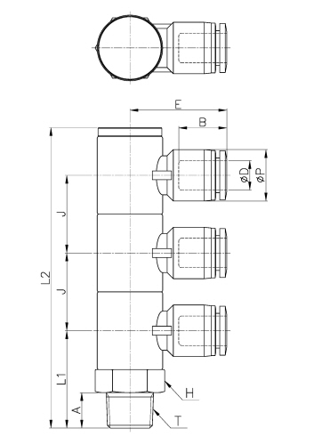 Model D P T L1 L2 E A B J H(Hex) ORIFICE WEIGHT(g) BOX(EA)