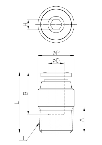 Model ∅D ∅P T L A B H(Hex) ORIFICE WEIGHT(g) BOX(EA)