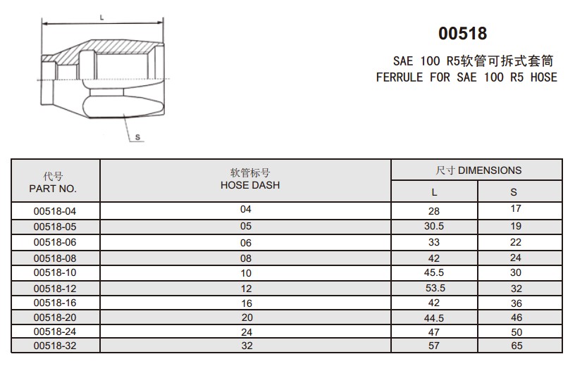 00518-04,00518-05,00518-06,00518-08,00518-10,00518-12,00518-16,00518-20,00518-32,00518-24,扣壓式軟管接頭 |
