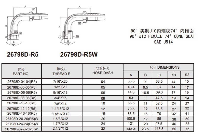 26798D-04-04(R5),26798D-05-05(R5),26798D-06-06(R5),26798D-08-08(R5),26798D-10-10(R5),扣壓式軟管接頭