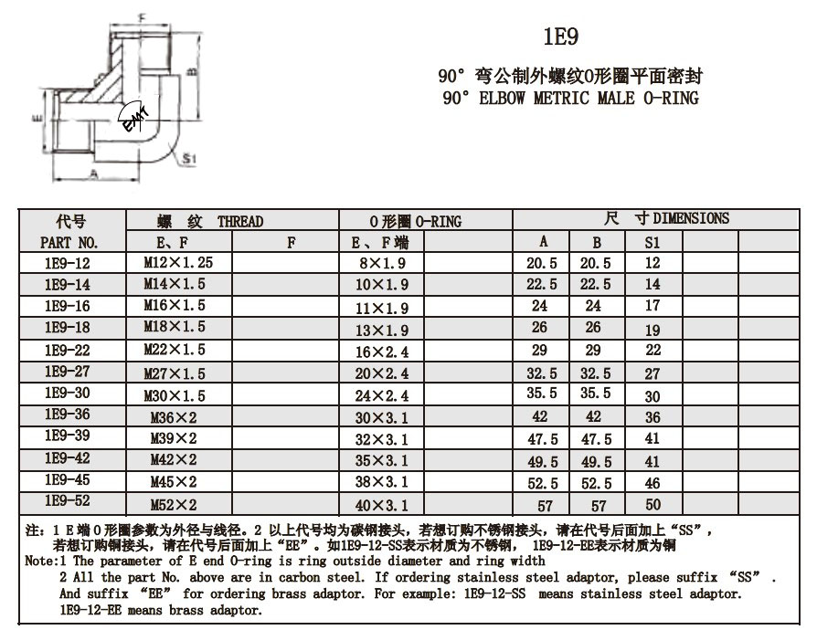 1E9-12,1E9-14,1E9-16,1E9-18,1E9-22,1E9-27,1E9-30,1E9-42,1E9-45,1E9-52,1E9-36,1E9-39,平面密封接頭
