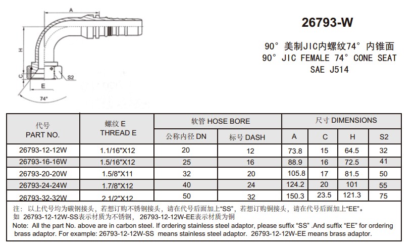 26793-12-12W,26793-16-16W,26793-20-20W,26793-24-24W,26793-32-32W,扣壓式軟管接頭