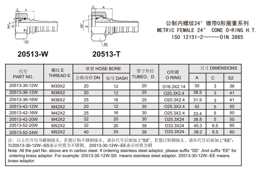 20513-30-12W,20513-36-12W,20513-42-12W,20513-42-16W,20513-52-24W,扣壓式軟管接頭