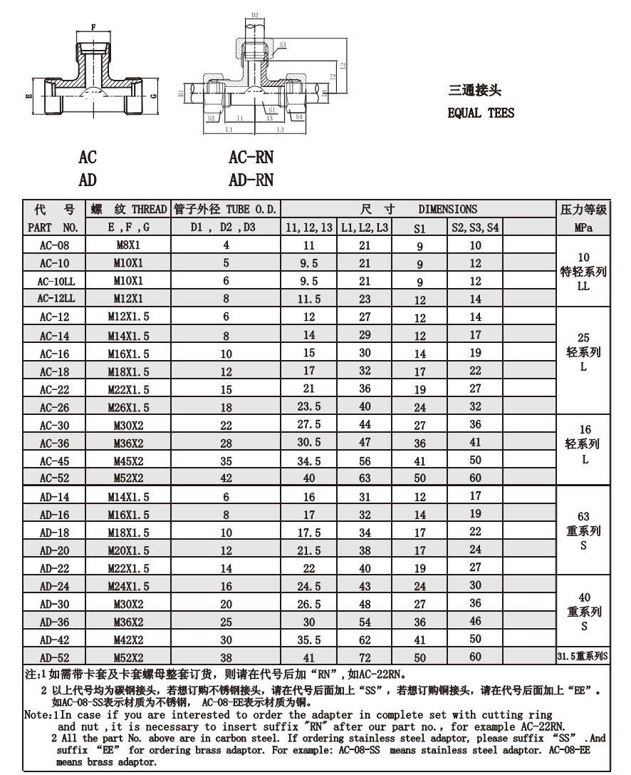 AC-08,AC-10,AC-22,AC-36,AC-45,AC-52,AD-14,AD-20,AD-36,AD-42,AD-52,三通接頭