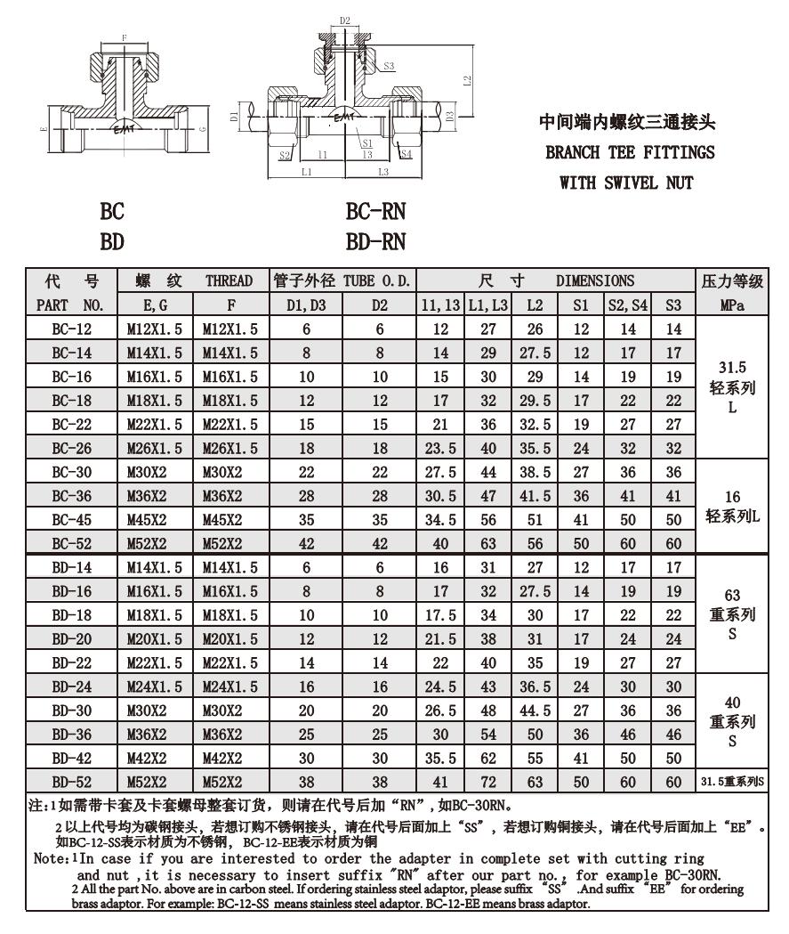 BC-12,BC-26,BC-30,BC-45,BC-52,BD-18,BD-20,BD-36,BD-42,BD-52,內(nèi)螺紋三通接頭