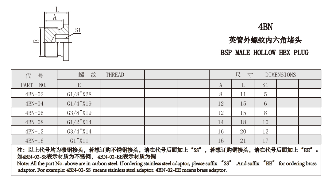 4BN-02,4BN-04,4BN-06,4BN-08,4BN-12,4BN-16,內(nèi)六角堵頭