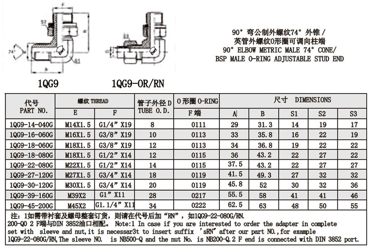 1QG9-14-040G,1QG9-16-060G,1QG9-18-060G,1QG9-27-120G,1QG9-39-160G,1QG9-45-200G,錐面密封接頭