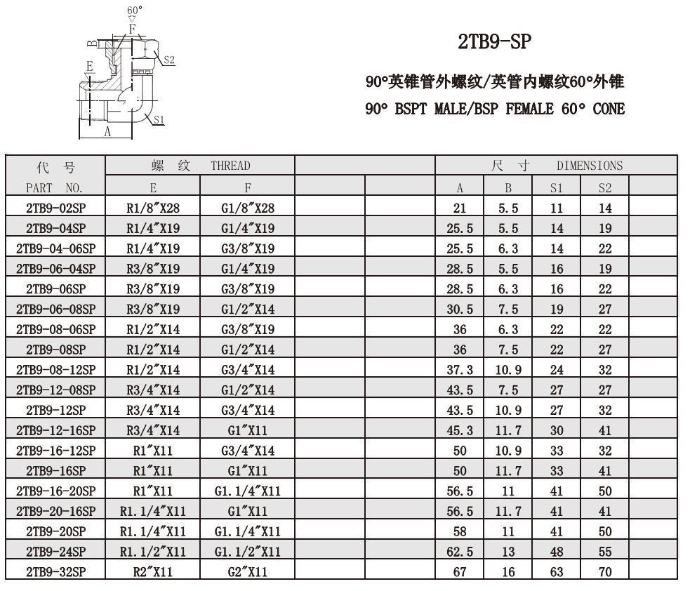 2TB9-02SP,2TB9-04SP,2TB9-06SP,2TB9-08SP,2TB9-12SP,2TB9-16SP,2TB9-24SP,2TB9-32SP,錐面密封接頭