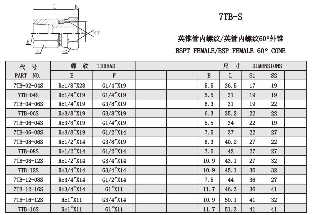 7TB-04S,7TB-06S,7TB-08S,7TB-12S,7TB-16S,7TB-02-04S,7TB-04-06S,螺紋錐面密封接頭