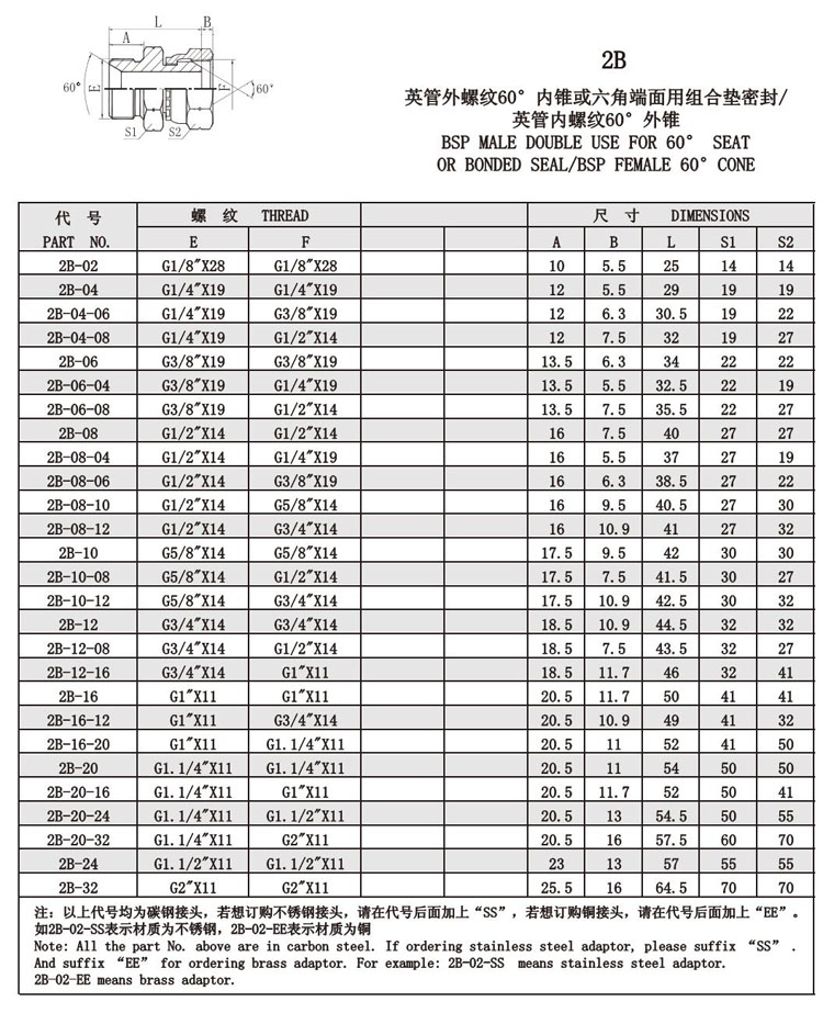 2B-02,2B-04,2B-06,2B-08,2B-10,2B-12,2B-16,2B-20,2B-24,2B-32,2B-04-06,密封接頭