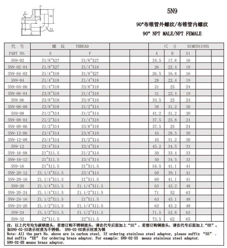 5N9-02,5N9-04,5N9-06,5N9-08,5N9-12,5N9-16,5N9-20,5N9-24,5N9-32,內螺紋接頭