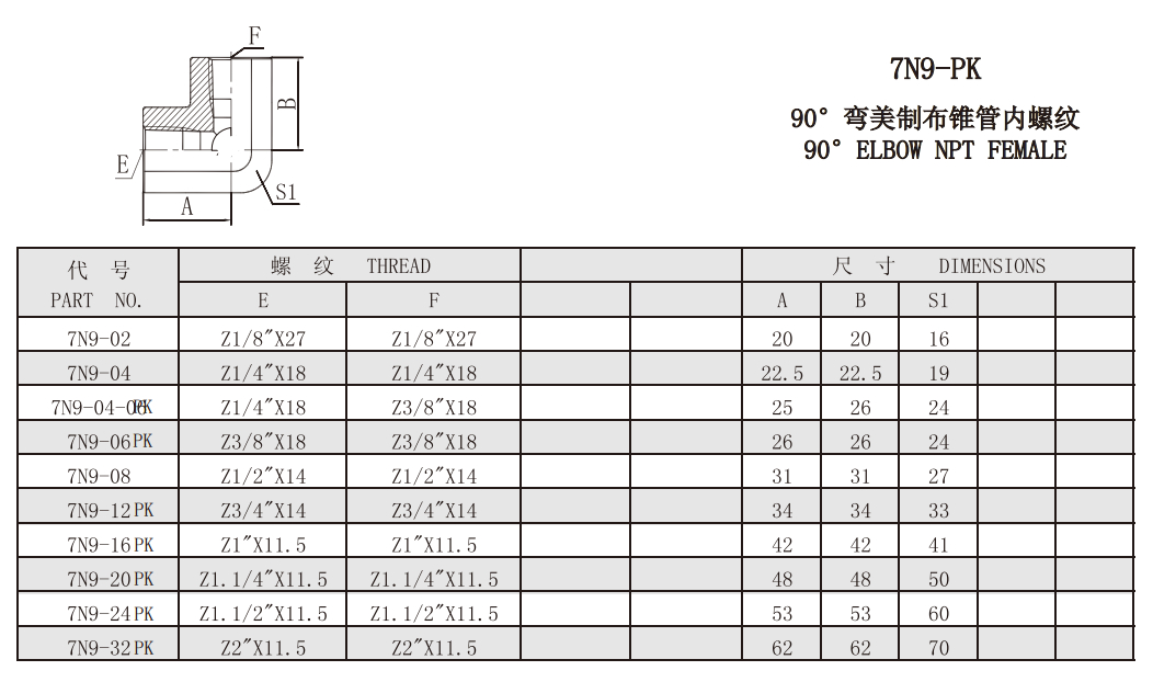 7N9-02,7N9-04,7N9-06PK,7N9-08,N9-12PK,N9-16PK,N9-20PK,N9-24PK,N9-32PK,內(nèi)螺紋接頭