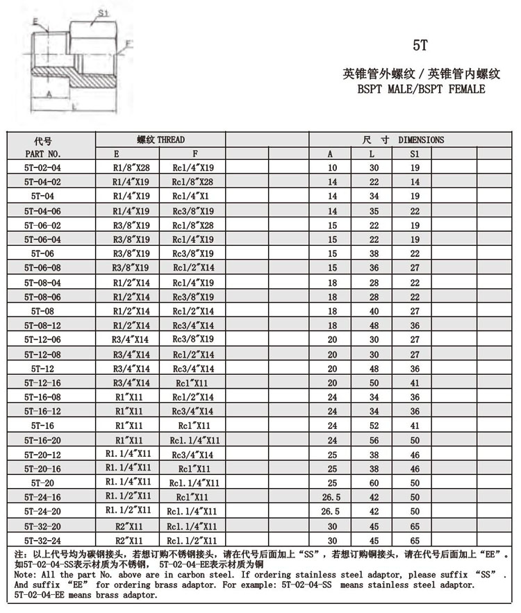 5T-02,5T-04,5T-06,5T-08,5T-12,5T-16,5T-20,5T-24,5T-32,內(nèi)螺紋接頭