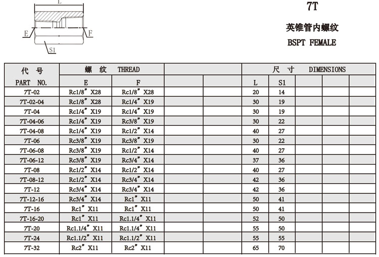 7T-02,7T-04,7T-06,7T-08,7T-12,7T-16,7T-20,7T-24,7T-32,英錐管內(nèi)螺紋接頭