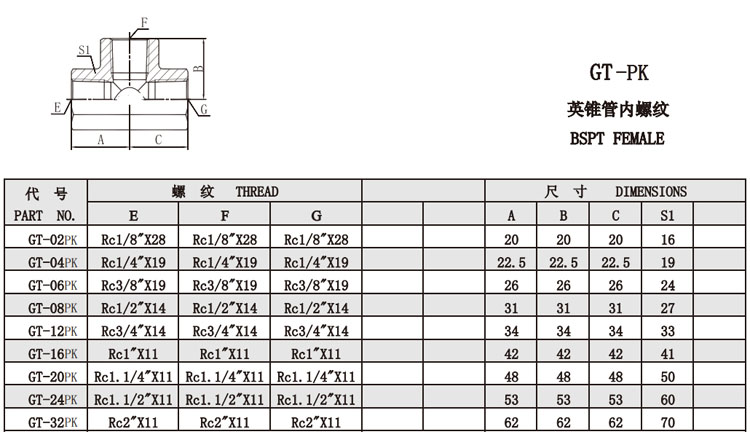 GT-02PK,GT-04PK,GT-06PK,GT-08PK,GT-12PK,GT-16PK,GT-20PK,GT-24PK,GT-32PK,英錐管內(nèi)螺紋接頭