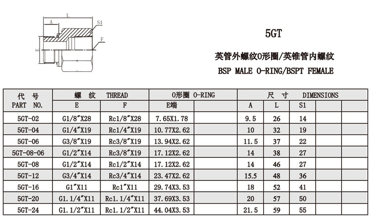5GT-02,5GT-04,5GT-06,5GT-08-06,5GT-08,5GT-12,5GT-16,5GT-20,5GT-24,內螺紋接頭