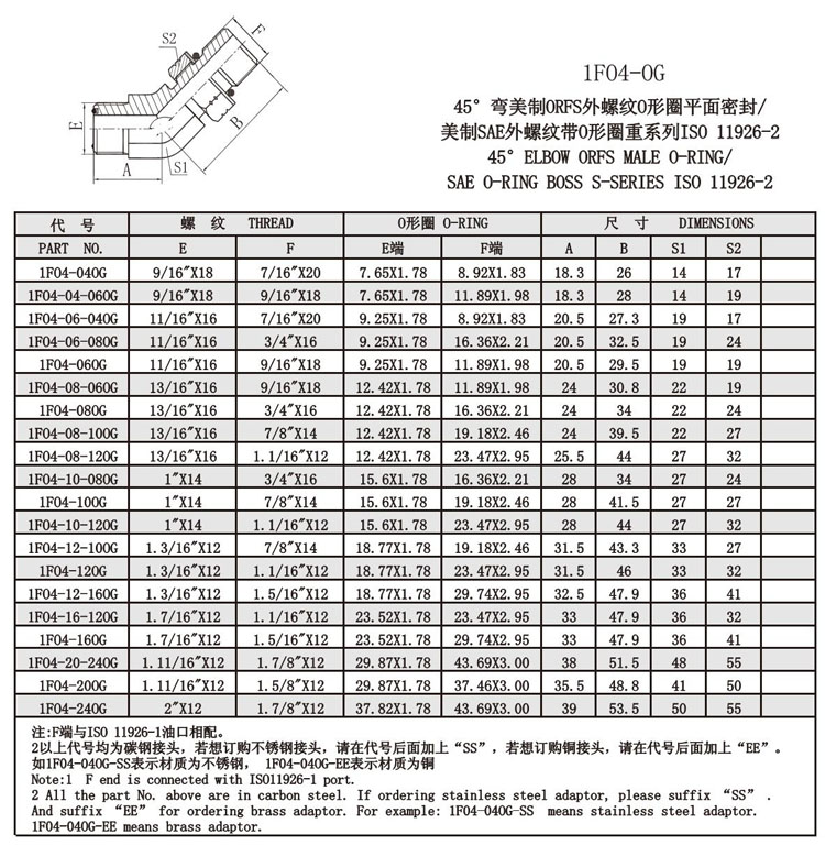 1F04-040G,1F04-060G,1F04-080G,1F04-100G,1F04-120G,1F04-160G,1F04-200G,1F04-240G,美螺紋O形圈密封接頭