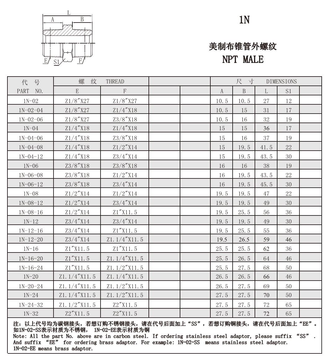 1N-02,1N-04,1N-06,1N-08,1N-12,1N-16,1N-20,1N-24,1N-32,內(nèi)螺紋接頭