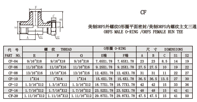 CF-04,CF-06,CF-08,CF-10,CF-12,CF-16,CF-20,美螺紋O形圈密封接頭