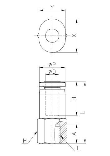 Model ¢D ¢P T L A B H(Hex) X Y ORIFICE WEIGHT(g) BOX(EA)