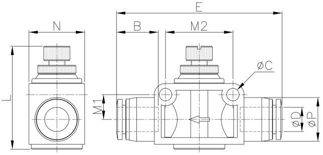 | Model | ∅D | ∅P | L/MIN | L/MAX | E | N | ∅C | B | M1 | M2 | WEIGHT(g) | BOX(EA) |