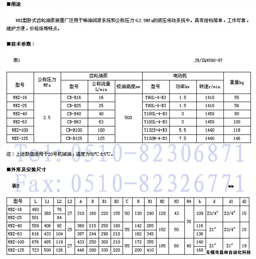 WBZ-63,WBZ-100,WBZ-125,WBZ-10,WBZ-6,WBZ-16,WBZ-25,WBZ-40,臥式齒輪油泵裝置