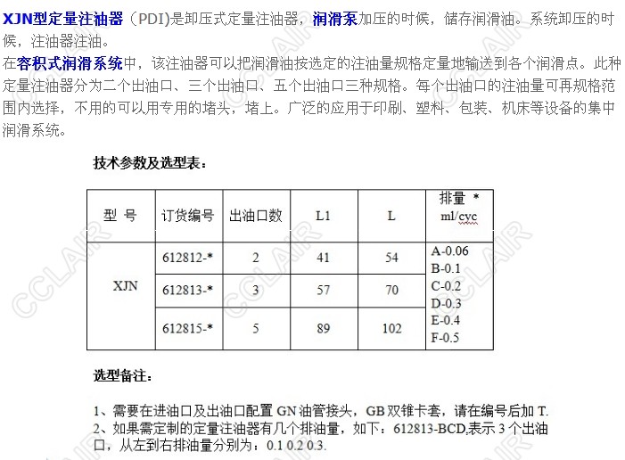 XJN2,XJN3,XJN5,612812-A,612812-AB,612812-AC,612812-AD,612812-AE,612812-AF,定量注油器