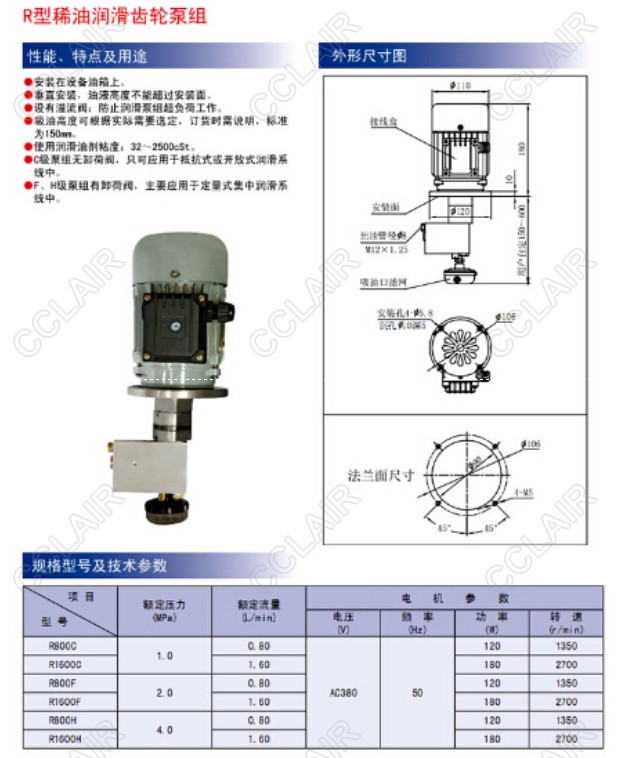 R800C,R1600C,R800F,R1600F,R800H,R1600H,R型稀油齒輪潤滑泵組