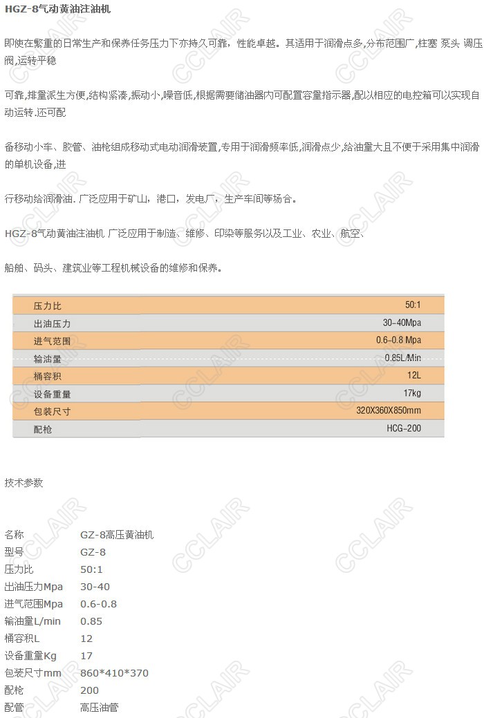 HGZ-8,氣動黃油注油機