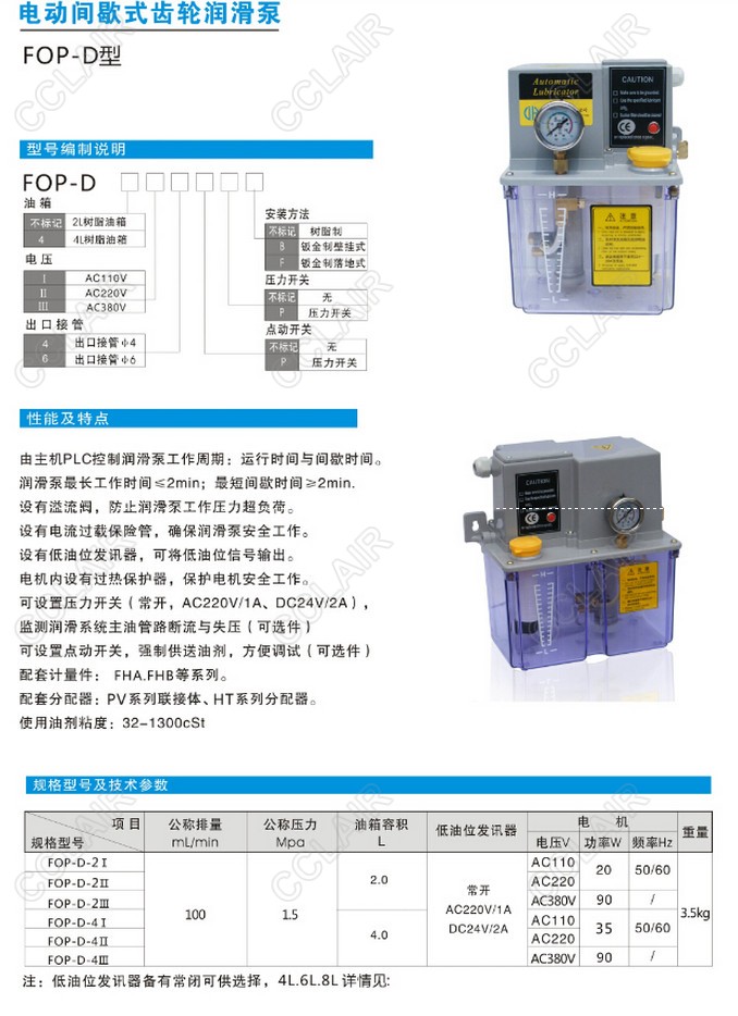 FOP-D-2I,FOP-D-2II,FOP-D-2III,FOP-D-4I,FOP-D-4II,FOP-D-4III,電動間歇式稀油潤滑泵 |