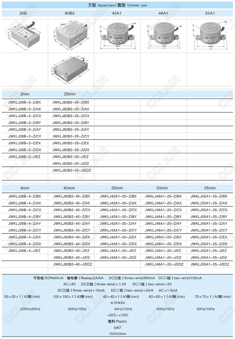 JWKLJ26B-2-Z/BX,JWKLJ80B2-25-Z/DX,JWKLJ48A1-20-J/DZ,JWKLJ55A1-25-J/EDZ,接近開關(guān)
