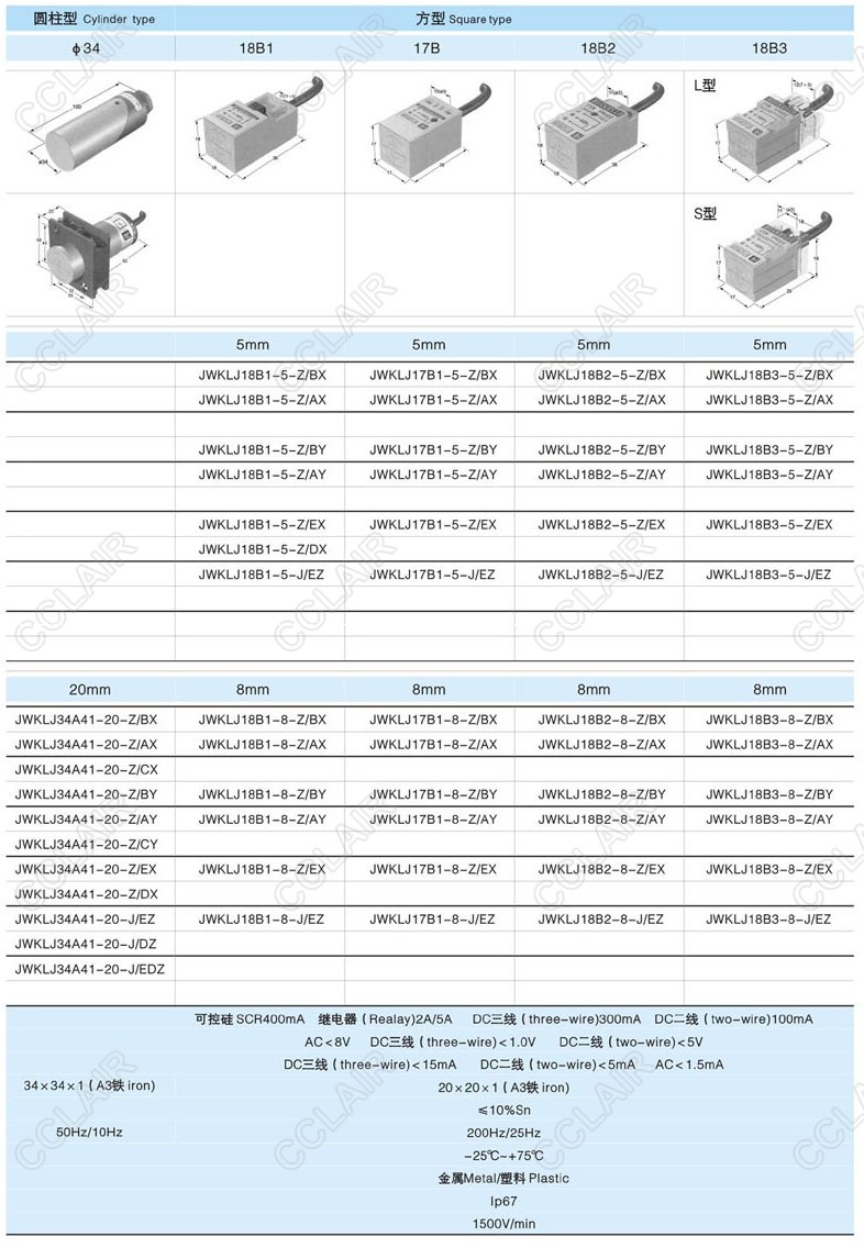 JWKLJ18B1-5-Z/BX,JWKLJ18B3-5-Z/BX,JWKLJ18B3-8-Z/EX,JWKLJ18B3-8-J/EZ,接近開關