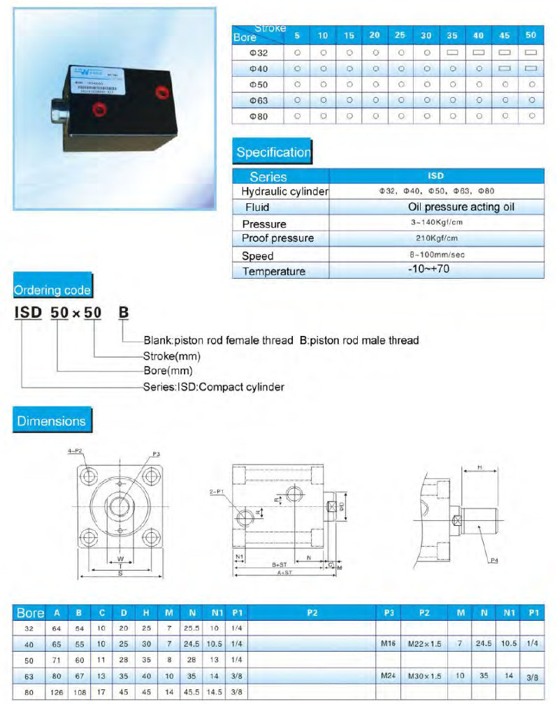 ISD32X5B,ISD32X10B,ISD40X15B,ISD50X20B,ISD63X25B,ISD80X30B,ISD40X40B,Shinya緊湊型標(biāo)準(zhǔn)液壓缸