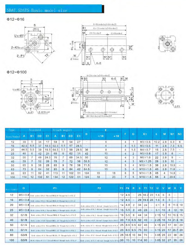 SDAT-12,SDAT-16,SDAT-20,SDAT-25,SDAT-32,SDATS-40,SDATS-50,SDATS-63,SDATS-80,Shinya緊湊型氣動(dòng)缸
