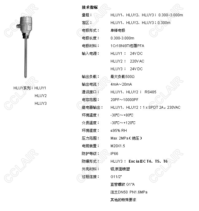 HLUY1,HLUY2,HLUY3,HLUY射頻導(dǎo)納物位計(jì)