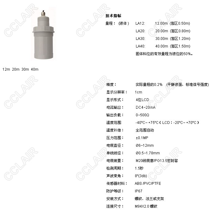 LA12,LA20,LA30,LA40,大量程超聲波探頭