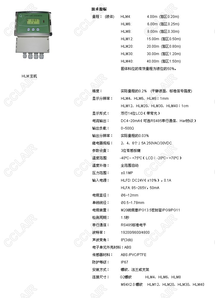 HLM4,HLM6,HLM8,HLM12,HLM20,HLM30,HLM40,HLM分體式超聲波物位計