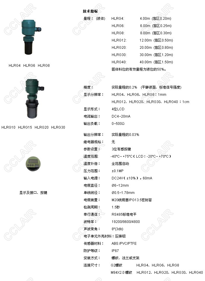 HLRG4,HLRG6,HLRG8,HLRG12,HLRG20,HLRG30,HLRG40,HLRG一體式超聲波物位計(jì)