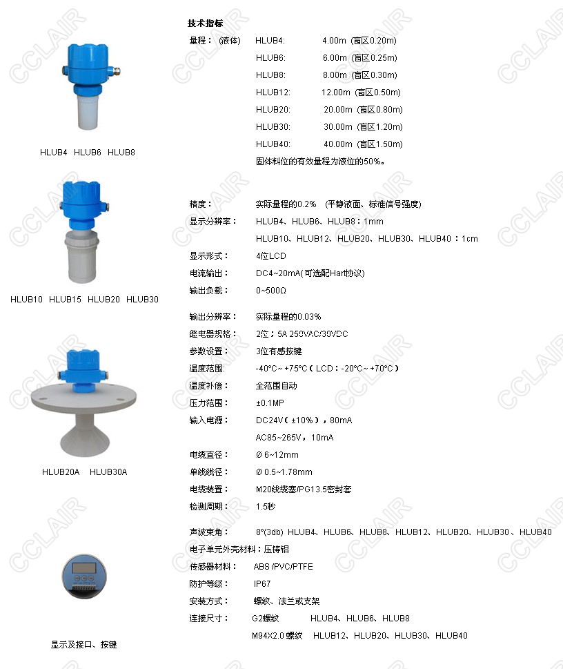 HLUB4,HLUB6,HLUB8,HLUB12,HLUB20,HLUB30,HLUB40,HLUB一體式超聲波物位計