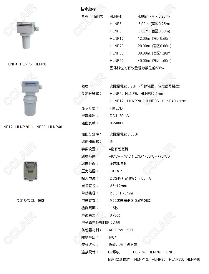 HLNP4,HLNP6,HLNP8,HLNP12,HLNP20,HLNP30,HLNP40,HLNP一體式超聲波物位計