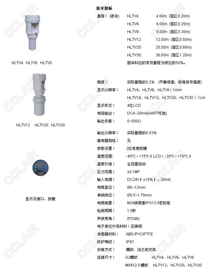 HLTV4,HLTV6,HLTV8,HLTV12,HLTV20,HLTV30,HLTV一體式超聲波物位計