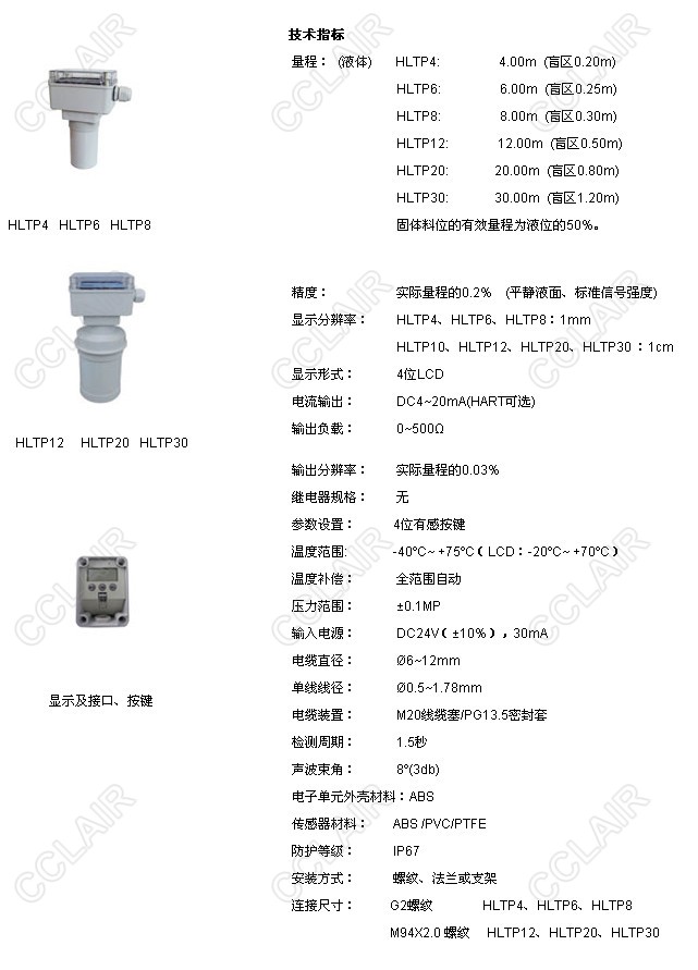 HLTP4,HLTP6,HLTP8,HLTP12.HLTP20,HLTP30,HLTP一體式超聲波物位計(jì)