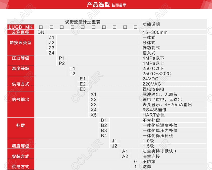 LUGB-MK-DN15-Z1-P1-T1-E1,LUGB-MK-DN300-Z4-P2-T2-E3,MIK-LUGB渦街流量計
