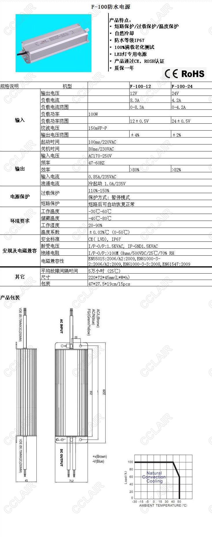 F-100-12,F-100-24,F-100,鋁殼防水電源